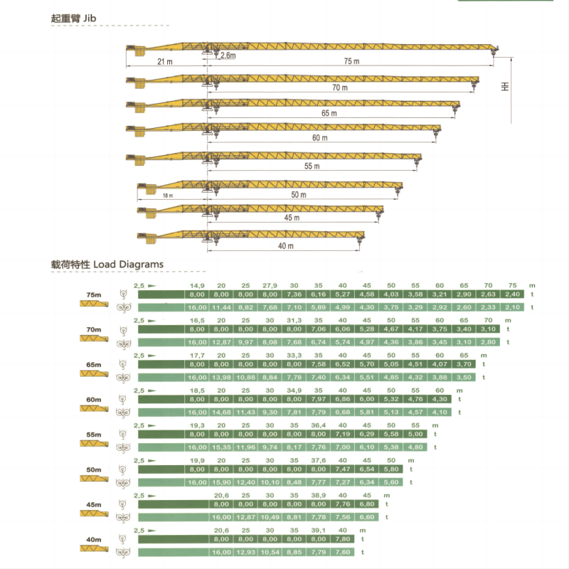 4. There is no boom tie rod, the cross-section size of the boom is larger than that of ordinary tower cranes of the same level, the buckling deformation is small when hoisting, and the boom steel structure has a long life and high safety.